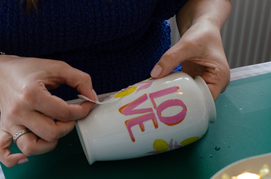 - De afbeeldingen aanbrengen op jouw gekozen vintage keramiek